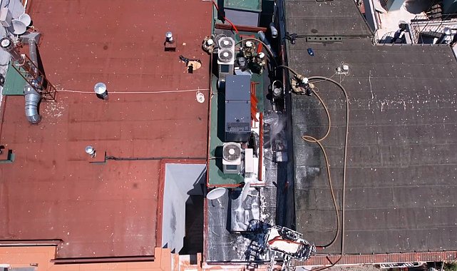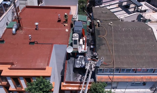 Sultanahmet'te restorasyon çalışması devam eden 4 katlı otelin çatı katında yangın çıktı. Yangın, itfaiye ekiplerinin müdahalesinin ardından söndürüldü. Ekiplerinin yangını söndürdükleri anlar ise havadan görüntülendi.