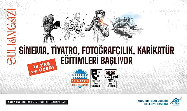 Sultangazi Belediyesi, sanatla iç içe olmak isteyen gençler için hayata geçirdiği Sanat Akademileri'nde sinema, tiyatro, fotoğrafçılık ve karikatür eğitimlerinde yeni dönem kayıtlarına başladı. Kurslara başvurular 31 Ekim'e kadar devam edecek.
