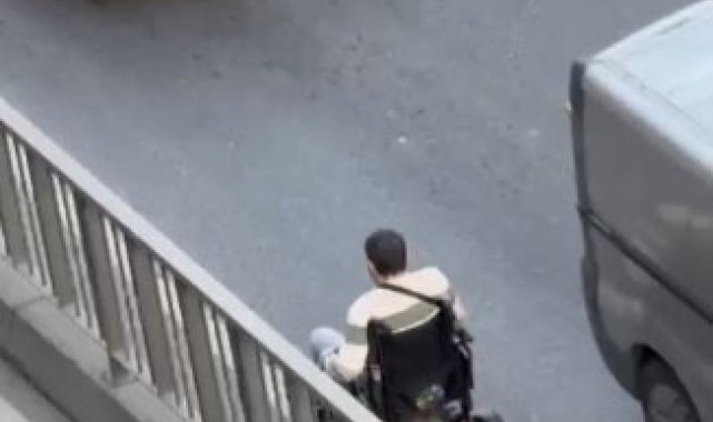 Sultangazi'de engelli bir vatandaş, tekerlekli sandalyesiyle Eski Edirne Asfaltı üzerinde trafiğe girerek ters yönde ilerledi. Hem kendi hayatını hem de sürücülerin can güvenliğinin tehlikeye atıldığı anlar cep telefonu kamerasına yansıdı.