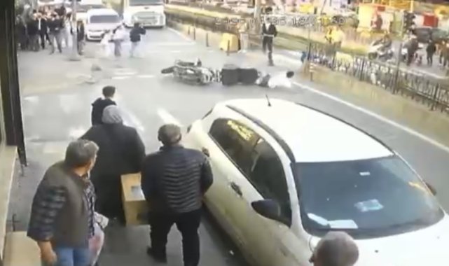 İstanbul Sultangazi'de motosikletin çarptığı yaya yaralandı. Kaza anı güvenlik kamerasına yansıdı.Edinilen bilgilere göre kaza, 26 Nisan'da Sultangazi Sultançiftliği Eski Edirne asfaltında saat 19.30 sıralarında meydana geldi. Seyir halindeki motosikletli, yolun karşı tarafına geçmeye çalışan Bayram Abdullayev'e (43) çarptı. Çarpmanın etkisiyle savrulan yaya yaralanırken, çevredeki vatandaşların ihbarı üzerine olay yerine sağlık ekipleri sevk edildi. İlk müdahalesi olay yerinde yapılan Abdullayev ambulansla Haseki Eğitim ve Araştırma Hastanesi'ne kaldırılırken, motosiklet sürücüsü gözaltına alındı. Kaza anı çevredeki bir iş yerinin güvenlik kamerasına saniye saniye yansıdı. Görüntülerde motosikletin yayaya çarptığı ve yayanın yere savrulduğu, sürücüsünün zıplayarak tepki verdiği anlar yer aldı.