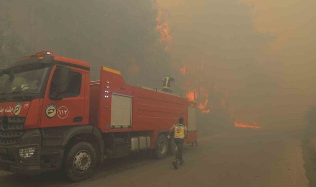 Suriye'de orman yangını sürüyor: itfaiyeciler alevlerin arasında kaldı