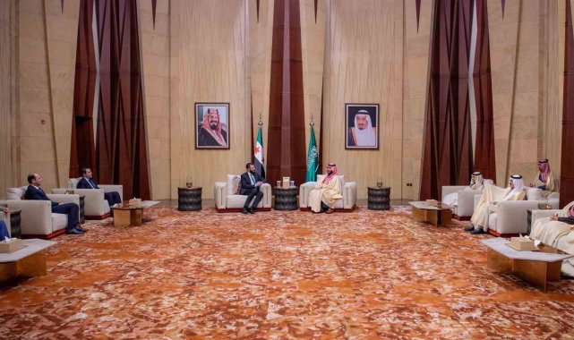 Suriye Devlet Başkanı Ahmed eş-Şara, Riyad'da Suudi Arabistan Veliaht Prensi Muhammed bin Selman tarafından kabul edildi.Suriye Devlet Başkanı Ahmed eş-Şara, göreve gelmesinin ardından ilk yurt dışı gezisini Suudi Arabistan'a gerçekleştiriyor. Suudi Arabistan'ın başkenti Riyad'a ulaşan eş-Şara ve heyeti, Kral Halid Uluslararası Havalimanı'nda Riyad Bölgesi Vali Yardımcısı Prens Muhammed bin Abdülrahman bin Abdülaziz ve diğer bazı yetkililer tarafından karşılandı. Eş-Şara, havalimanındaki karşılamanın ardından Riyad'daki Al Yamamah Sarayı'na geçti. Eş-Şara ve heyeti Suudi Arabistan Veliaht Prensi Muhammed bin Selman tarafından karşılandı. İki lider, daha sonra heyetleriyle birlikte görüşmeye geçti.Ziyaretinde eş-Şara'ya Dışişleri Bakanı Esad Hasan Şeybani de eşlik ediyor.
