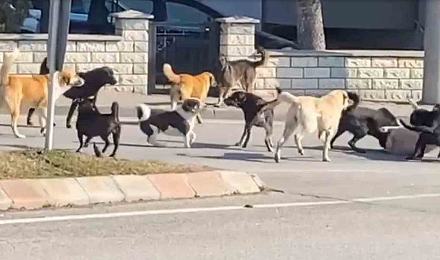 Sürü halindeki 15 köpeğin kavgası korkuttu