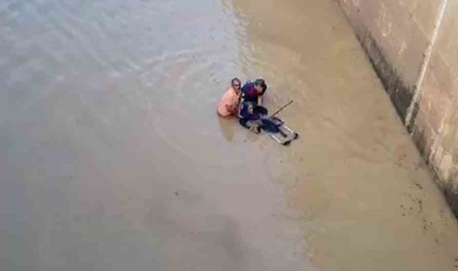 Hatay'da yağışın etkisiyle suyla dolan alt geçitte mahsur kalarak boğulmak üzere olan engelli kadını itfaiye kurtardı.