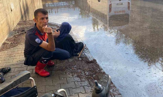 Suyla dolu alt geçitte ölümle burun buruna gelen engelli yaşlı kadını itfaiye kurtardı