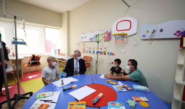Şahinbey Belediye Başkanı Mehmet Tahmazoğlu, Gaziantep Üniversitesi Onkoloji Hastanesi'nde tedavi gören lösemili çocukları ziyaret ederek onlara moral verdi.