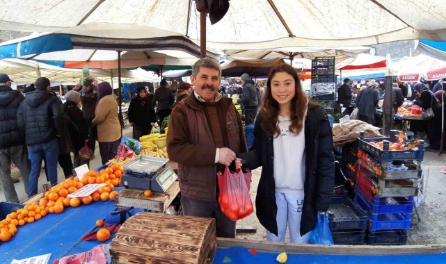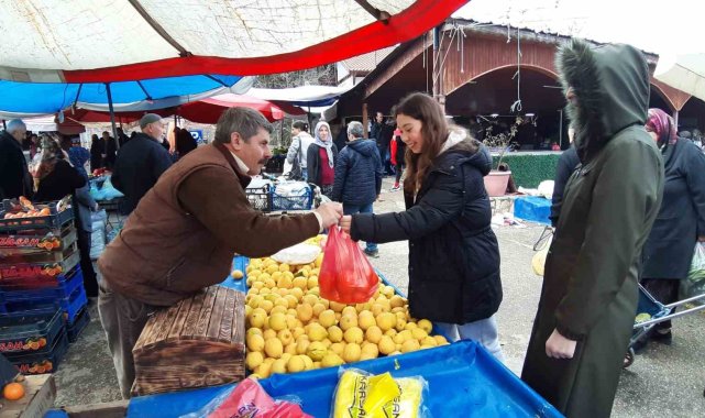 Bolu'da bir pazarcı esnafı portakal ve mandalina sattığı tezgahına "Takdir belgesi getirene vitamin bedava" yazısı asarak, öğrencilere ücretsiz meyve verdi.Bolu'nun Mudurnu ilçesinde 16 yıllık pazarcı esnafı Mehmet Karadayı, okulların ara tatile girmesi dolayısıyla öğrencilere jest yaptı. Esnaf Mehmet Karadayı, öğrencileri meyve yemeye teşvik etmek için ilgi çekici kampanya düzenledi. Tezgahına, "Takdir getirene vitamin bedava" yazısı asan Karadayı, karnesinde takdir belgesiyle gelen öğrencilere; ücretsiz muz, mandalina ve portakal verdi. Ayrıca Karadayı, teşekkür belgesiyle gelen öğrencileri de kırmayarak meyve hediye etti.Takdir belgesi alan öğrenci İremsu Kayahan, "Mehmet abinin kampanyasına eşlik ettim. Takdir belgemle birlikte geldim. Kendisine çok teşekkür ediyorum" diyerek Mehmet Karadayı'nın elini öptü.Kampanyanın önümüzdeki haftaya kadar süreceğini belirten Esnaf Mehmet Karadayı, "Ben çocuklarımıza elimden geldiği kadar destek veriyorum. Amacımız, çocukları daha da çalışmaya teşvik etmek. Hiç sıkıntı değil. Biz Mudurnu'nun ekmeğini yıllardır yiyoruz. Kampanya bu hafta ve haftaya devam edecek. Öğrencilerimize vitamin desteğini sürdürmeye devam edeceğiz. Çocuklarımızı tebrik ediyorum" dedi.