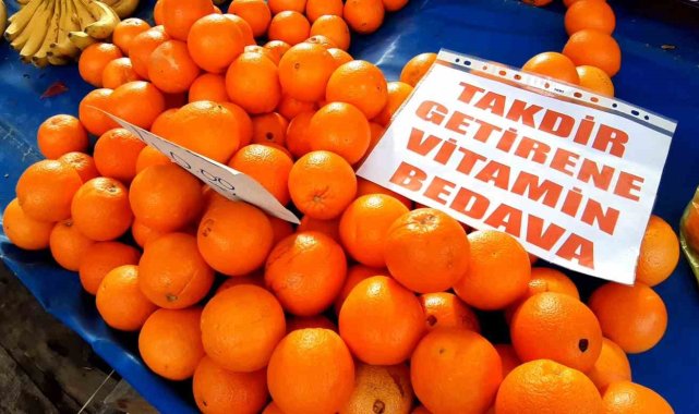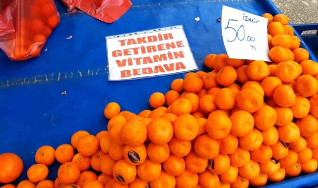 Bolu'da bir pazarcı esnafı portakal ve mandalina sattığı tezgahına "Takdir belgesi getirene vitamin bedava" yazısı asarak, öğrencilere ücretsiz meyve verdi.