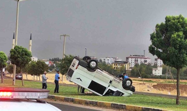 Gaziantep'in Yavuzeli ilçesinde ani bastıran sağanak yağış kazaya neden oldu. Yağış nedeniyle kayganlaşan yolda minibüs sürücüsü direksiyon hakimiyetini kaybederek aracıyla takla attı.