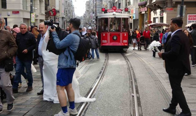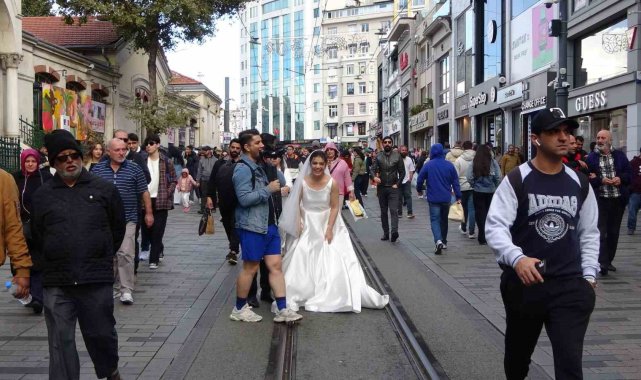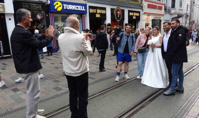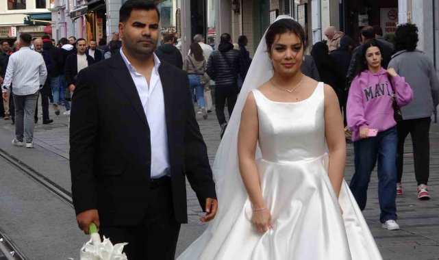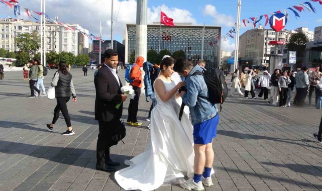 İstanbul'da dünyaevine giren İranlı çift, Taksim'de büyük ilgi gördü. Çevredeki insanlar gelin ve damatla fotoğraf çektirdi. Bir turist de çifte para hediye etti.İstanbul'da evlenen İranlı bir çift, Taksim'de turistlerin ve vatandaşların yoğun ilgisiyle karşılaştı. Caddede yürüyen birçok kişi, gelin ve damatla fotoğraf çektirmek için adeta sıraya girdi. Bir turist, evlenen çifte bir miktar para vererek mutluluklarını paylaştı. Taksim'de kestane satan Halit Terazi, "Taksim İstiklal Caddesi turizmin başkenti. Burası çiftler tarafından yoğun ilgi görüyor. Çiftler Taksim İstiklal Caddesi'ni tercih ediyorlar" dedi.