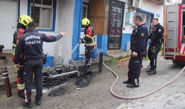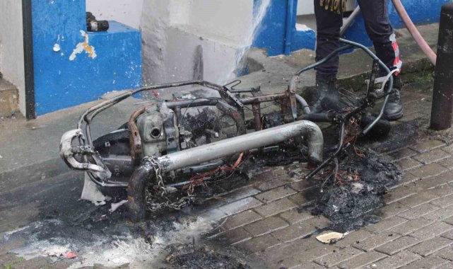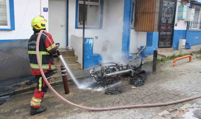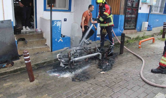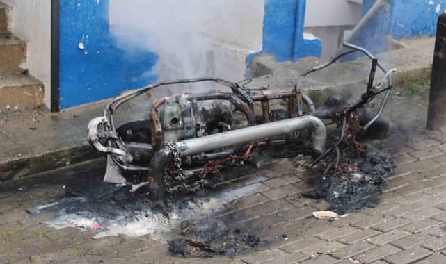 Aydın'ın Efeler ilçesinde tamirat sırasında bir anda tutuşan elektrikli motosiklet küle döndü.Yangın, Efeler ilçesi Köprülü Veysipaşa Mahallesi 1602 Sokak üzerinde meydana geldi. Edinilen bilgiye göre Y.Ş.'nin evinin önünde tamir ettiği elektrikli motosiklet, henüz bilinmeyen bir nedenle alev aldı. Kısa sürede büyüyen alevler motoru sararken, ihbar üzerine bölgeye polis ve itfaiye ekipleri sevk edildi. Kısa sürede olay yerine gelen itfaiye ekipleri, alevlere müdahale etti. Yangın esnasında oluşan yoğun duman mahalleyi sararken, yangın eve sıçramadan söndürüldü. Ekipler soğutma çalışması gerçekleştirirken, olayla ilgili inceleme başlatıldı.