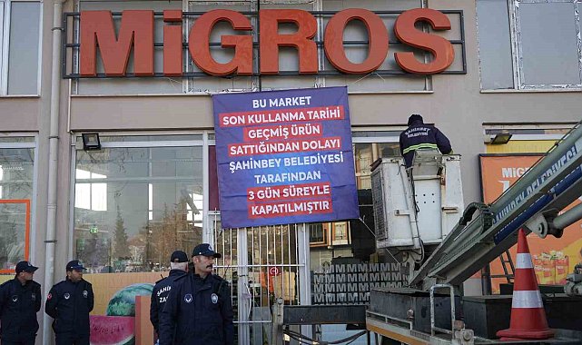 Gaziantep'te Şahinbey Belediyesi tarafından yapılan denetimlerde tarihi geçmiş ürün sattığı ve fahiş fiyat uyguladığı tespit edilen Migros market şubesi, 3 gün süreyle kapatıldı. Mühürlenen market kapısına kapatıldığına dair afiş asıldı, market çalışanları ise basın mensuplarının çekim yapmasına izin veren zabıtaya tepki gösterdi.