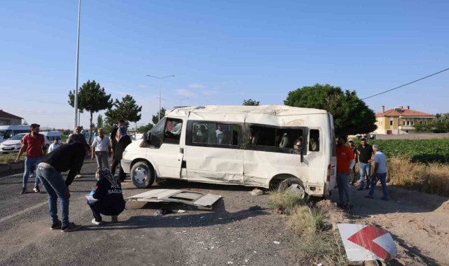 Nevşehir'de tarım işçilerini taşıyan minibüs, hafif ticari araç ile çarpışarak takla attı. Kazada 9 kişi yaralandı.