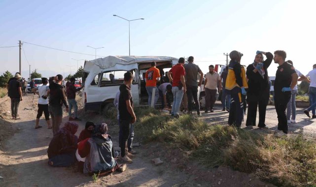Tarım işçilerini taşıyan minibüs takla attı: 9 yaralı
