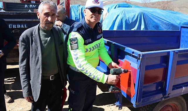 Gümüşhane'de jandarma ekipleri, yaklaşan tarla ve bahçe sezonu öncesinde traktör kazalarını önlemek için sürücülere reflektör ve trafik eğitimi verdi.
