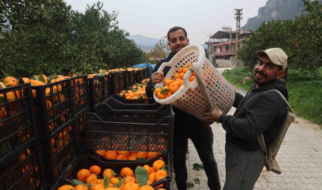Hatay'da verimin yüksek olduğu mandalinada hasat devam ederken ürünün tarlada kilogram fiyatı 2 TL'ye kadar geriledi. Defne ilçesinde çiftçilik yapan Mehmet Bal, ürünün marketlerde 35 TL'yi bulan fiyatlarla kat kat fazlasına insanlara satıldığını söyledi.Türkiye'nin en verimli topraklarından olan Hatay'da mandalina hasadında bereketi yaşanıyor. Sabahın erken saatlerinde soğuk havada başlayan hasatta toplanan mandalinalar, Türkiye'nin dört bit yanına gönderiliyor. Defne ilçesi Karşıyaka Mahallesi'nde çiftçilik yapan Mehmet Bal, 20 işçiyle beraber mandalina bahçesinde hasat yapıyor. Mandalinada yaşanan bereketle birlikte ürünün tarla fiyatı 2 TL'ye kadar geriledi. Mandalinanın market fiyatının 35 TL'yi bulduğunu ifade eden çiftçi Bal, marketlerin tarla fiyatının kat kat fazlasına ürünleri vatandaşlara sattığını söyledi."Bahçelerden mandalina 1 ila 2 TL arasında satılırken marketlerde 30 ila 35 TL arasından insanlara satılıyor"Mandalinada yaşanan bereketle birlikte kilogram fiyatının 2 TL'ye kadar düştüğünü ifade eden çiftçi Mehmet Bal, "Burada 6 dönümlük mandalina bahçemiz var, 2 gündür hasat yapıyoruz. Hasat çok şükür iyi gidiyor ama maliyetleri çok düşük oldu. Fiyatlar 3 yıldır genel olarak çok düşük ve bundan dolayı mandalina ağaçta kalıyor, mandalinayı zararına satıyoruz. İşçiliği mandalina fiyatından yüksek oldu. Bahçelerden mandalina 1 TL ile 2 TL arasında satılırken marketlerde 35 TL arasından insanlara satılıyor. Mandalina geçen yıl olmadı, bir önceki yılda fiyatı düşük kalmıştı. Bu yıl da mandalinanın fiyatından dolayı zarardayız. Kışın etkili olan don yüzünden ağaçlarımızdan bazıları kurudu ve onlardan hasat yapamadık. Kuraklık da bayağı etkili oldu ve ağaçları sulamakta zorlandık. Yağmur yağmadığı için kuyulardan çektiğimiz sularda azaldı. Hasat ettiğimiz mandalinalar Adıyaman'a gidecek. Hasat ettiğimiz bahçeden 10 ton rekolte bekliyorum. Gelecek yıllarda buralarda bir kooperatif kurulursa çiftçiler olarak daha iyi olacak. Biz buradan ucuz satarken marketlerde kat kat fazlasına insanlara satıyorlar" dedi."İşçilerin yevmiyesi kadınlarda bin TL iken erkeklerden bin 200 ila bin 400 TL arasında değişiyor"Bahçede mandalina hasadı yapan işçilerin ortalama bin TL ila bin 400 TL arasından yevmiye aldıklarını söyleyen işçi Pınar Bekmez, "Mandalina hasadı yapıyoruz. Mandalinaları kamyona yükledikten sonra sebze haline veya şehir dışına gidiyor. Sabah erken 7'de gelip akşam 4'te bırakıyoruz. Sabah erken saatlerinde çok soğuk olduğu için zor oluyor. Bu yüzden bazen ateş yakıp ısınıyorlar. İşçilerin yevmiyesi kadınlarda bin TL iken erkeklerden bin 200 ila bin 400 TL arasında değişiyor. Burada 20 işçilerle birlikte hasat yapıyoruz" ifadelerini kullandı.