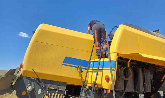 Tarlada çalışan biçerdöverde korkutan yangın
