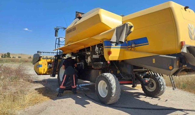 Çorum'un Alaca ilçesinde tarlada çalışan biçerdöverde çıkan yangın itfaiye ekipleri tarafından söndürüldü.