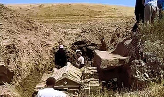 Tarlayı kazarak buldukları lahdi bırakıp kaçtılar