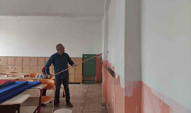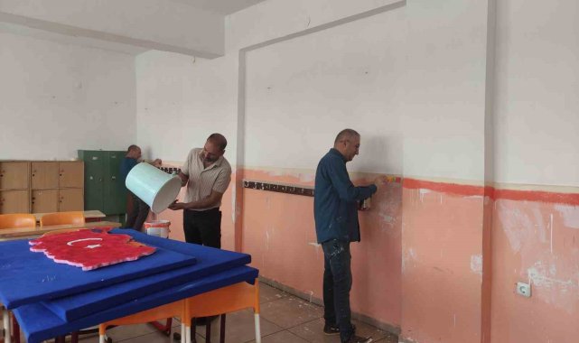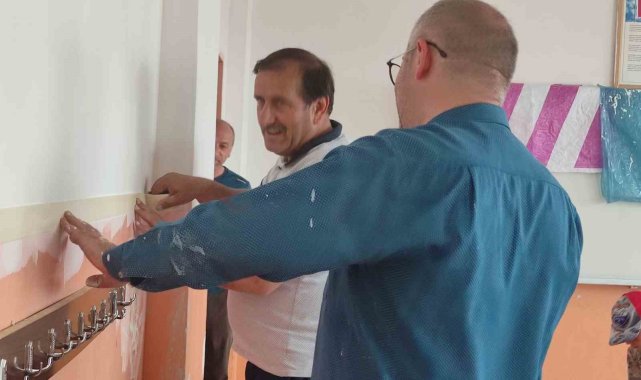 Ardahan'daki 23 Şubat İlkokulu'nun idarecileri ve öğretmenleri, tatil yapmak yerine okullarını boyayıp onararak yeni eğitim öğretim dönemine hazırlıyor.Eğitim öğretim döneminin sona ermesiyle kentteki öğrenciler yaz tatiline girerken, bazı öğretmenler de çocukların yeni dönemde daha iyi imkanlarda eğitim görmesi amacıyla görev yaptıkları okulun eksiklerini gidermeye çalışıyor.23 Şubat İlkokulu'nda görev yapan öğretmenler de tatillerini okulda çalışarak geçiriyor. Fedakar öğretmenler, okulun tahrip olan yerlerini onararak, dış cephesini boyuyor.Okul Müdürü Gürsoy Marancı, öğretmenlerle bir araya geldiklerinde Öğrencilerimizin daha güzel bir ortamda eğitim görmeleri bizi daha mutlu eder, düşüncesiyle böyle bir çalışma yapmaya karar verdiklerini anlattı. Öğretmenlerin bu çalışma için tatillerinden feragat ettiğini belirten Marancı, "2025-2026 eğitim öğretim sezonuna daha iyi hazırlanmak amacıyla okulumuzda ufak tefek tadilatlar yapmaya karar verdik. Öğretmen arkadaşlarımızla amacımız, okulumuzu daha da güzelleştirmek ve eğitim öğretim döneminde çocuklarımız için daha güzel ve yaşanılabilir bir alan oluşturmak" dedi.Sınıf Öğretmeni Cem Sinan Evgin, yaz tatilinde okulumuzun eksiklerini gidermek ve öğrencilerimizin temiz ve güzel bir sınıfta eğitim görmeleri için elimizden geleni yapıyoruz. Boya, sıraların tamiri gibi bir çok eksiği gidermeye çalışıyoruz. Okul müdürümüzün desteği ve yardımıyla okulumuzu ve memleketimizi bırakmıyoruz'' dedi.