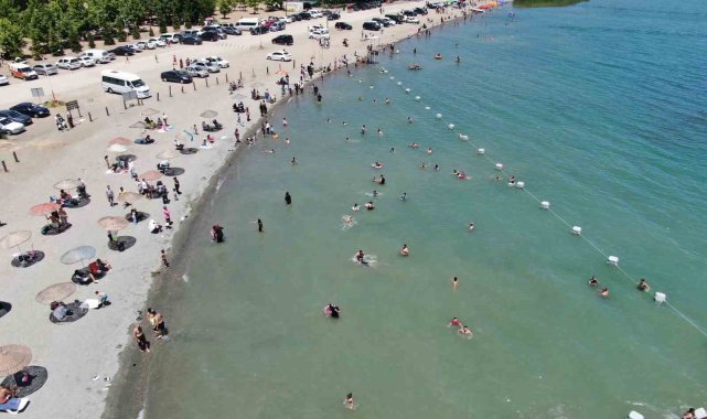 Elazığ ve çevre illerden tatilciler, doğunun gizli denizi olarak bilinen Hazar Gölü'ne akın etti.