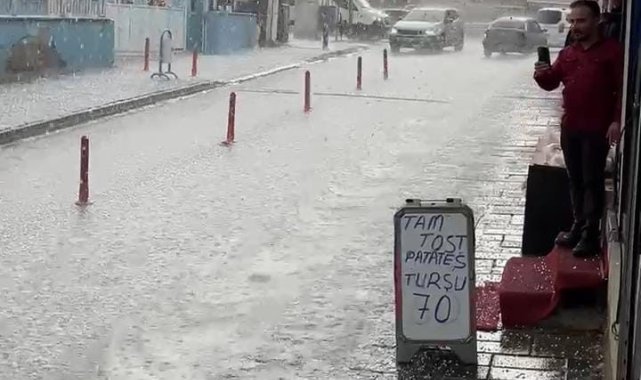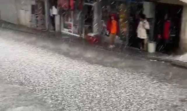 Bitlis'in Tatvan ilçesinde etkili olan dolu ve sağanak yağış hayatı olumsuz etkiledi.
