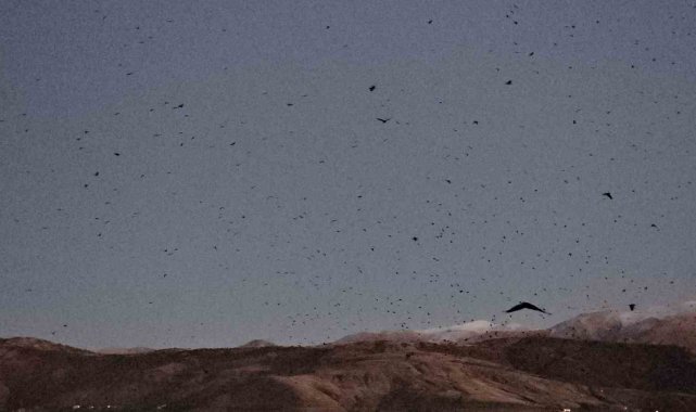 Tatvan'da gökyüzü kargalarla karardı