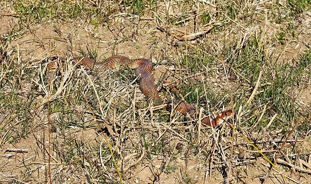 Bitlis'in Tatvan ilçesine bağlı İncekaya köyü kırsalında gezintiye çıkan doğa gezgini Rıdvan Bütün, nadir görülen kırmızı yılan (Dolicophis schmidti) görüntüledi.Arkadaşlarıyla birlikte kırsal bölgede yürüyüş yapan Bütün, yürüyüş sırasında arazide hareket eden yılanı fark etti. Soğukkanlı bir şekilde yaklaşan gezgin, cep telefonu ile hem yılanın videosunu hem de fotoğraflarını çekmeyi başardı.Uzmanlar, kırmızı yılanın (Dolicophis schmidti) Anadolu'nun doğu kesimlerinde görülen ve insanlara zarar vermeyen zehirsiz bir tür olduğunu belirtiyor. Özellikle tarım alanlarında fare ve küçük kemirgenlerle beslenerek ekosisteme fayda sağladığı biliniyor.