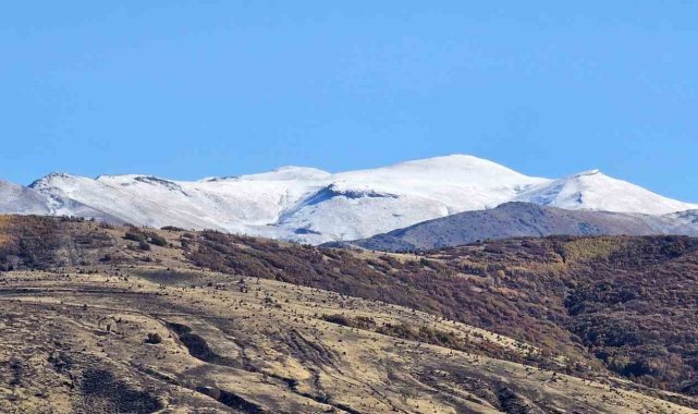 Bitlis'in Tatvan ilçesinin yüksek kesimleri yağan karla beyaza büründü.