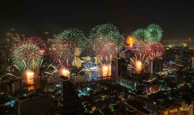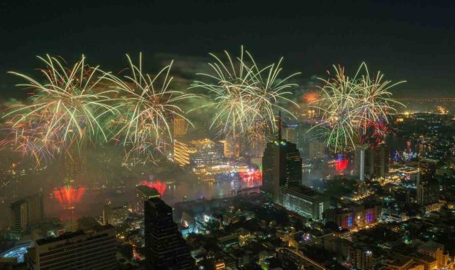 Güney Asya ülkesi Tayland, yeni yıla havai fişekler gösterileriyle 'merhaba' dedi.Tayland, yeni yıla görkemli şekilde 'merhaba' dedi. Başkent Bangkok'un geleneksel kutlama alanlarından Iconsiam, Central World ve Wat Arun'da gerçekleşen etkinliklerde, halk ve turistler yeni yılın gelişini renkli şekilde kutladı.Dünyaca ünlü k-pop yıldızı Lalisa'nın sahne aldığı Iconsiam'da toplanan büyük kalabalık, yeni yıla dans ve müzik gösterileriyle girdi. İlk kez kendi ülkesinde solo konser veren ünlü sanatçı Taylandlılardan yoğun ilgi gördü.Saatler 00.00'ı gösterdiğinde ise Bangkok'un Chao Phraya Nehri'nden fırlatılan binlerce havai fişek, başkentin gökyüzünü renklendirdi. Bangkok Valiliği tarafından yapılan açıklamada, bu yıl başkentte gerçekleşen gösterilerde kullanılan havai fişeklerin doğa dostu olduğu açıklandı.Öte yandan Tayland'ın Güney bölgelerinde ise yeni yıl kutlamaları sahil bölgelerinde ve halk plajlarında yapıldı. Hava sıcaklığının 25 derecenin üzerinde olduğu güney bölgelerde yerel halk ve yabancı turistler, plajlara kurulan kutlama alanlarında yeni yıla girdi.