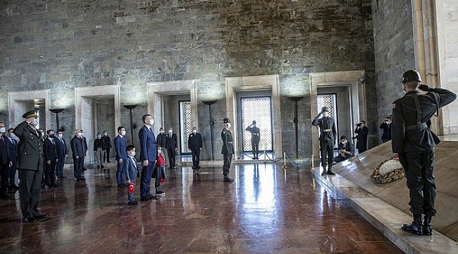 23 Nisan Ulusal Egemenlik ve Çocuk Bayramı ile TBMM'nin 101. açılış yıl dönümü kutlanıyor. tbmm Başkanı Mustafa Şentop ve devlet erkanı Anıtkabir'e geldi.