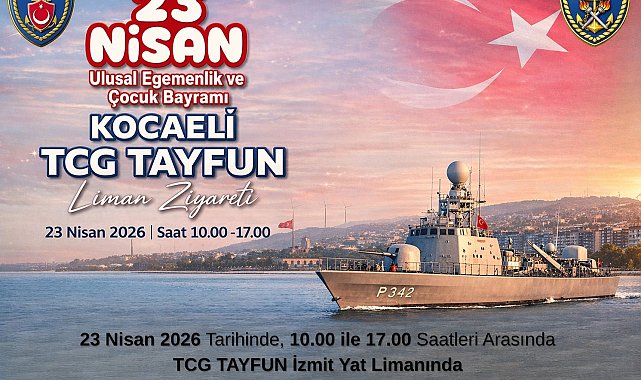 Kocaeli'de 23 Nisan Ulusal Egemenlik ve Çocuk Bayramı kutlamaları kapsamında TCSG-15 Sahil Güvenlik Botu ve TCG Tayfun Hücumbotu vatandaşların ziyaretine açılacak.TCSG-15 Sahil Güvenlik Botu 23 Nisan 2026 Perşembe günü 10.30-17.00 saatleri arasında İzmit Marina'da, TCG Tayfun Hücumbotu ise aynı gün 10.00-17.00 saatleri arasında İzmit Yat Limanı'nda ziyaret edilebilecek.Yetkililer, tüm vatandaşları gemileri ziyaret etmeye davet etti.