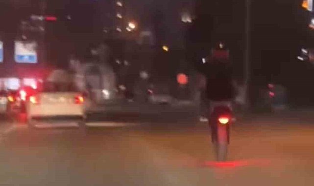 Bursa'da anayola çıkan motosikletli tek teker yaparak ilerledi. O anlar amatör kameraya yansıdı.Bursa'nın Nilüfer ilçesi Beşevler mevkii İzmir-Ankara yolu üzerinde ilerleyen bir motosiklet sürücü tek teker yaprak metrelerce ilerledi. Kazaya davetiye çıkaran sürücü kameraya yansırken, sürücünün duyarsız hareketleri diğer sürücülerinde dikkatini çekti. Sürücünün ne kendi ne de başkalarını düşünerek ilerlediği o anlar cep telefonu kamerasıyla kayda alındı.Trafik ekipleri de sosyal medyadaki görüntüler üzerine soruşturma başlattı.