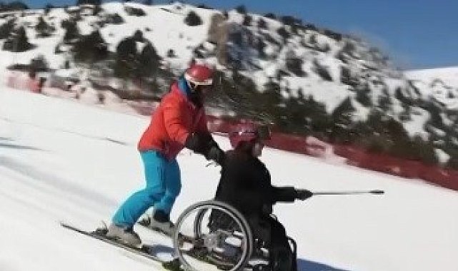 Erzincan'da yaşayan fiziksel engelli Ayşe Yalçın, tekerlekli sandalyesiyle kayak yaparak hayalini gerçekleştirdi.