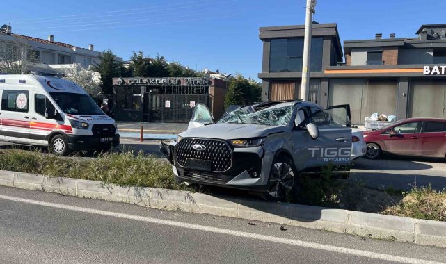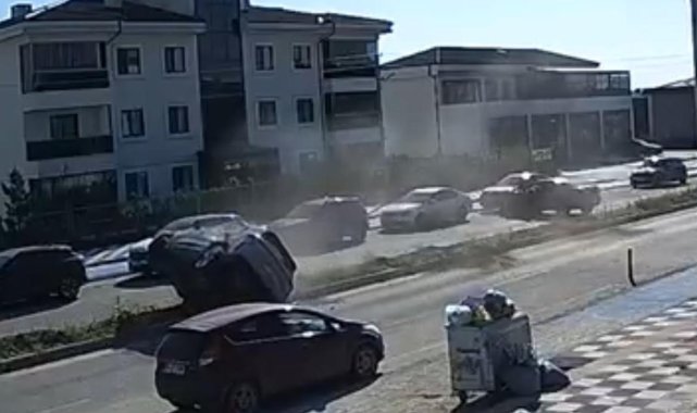 Tekirdağ'da 2'si çocuk 5 kişinin yaralandığı kaza kamerada: 25 metre boyunca taklalar attı