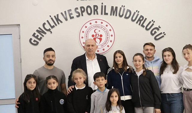 Tekirdağ'da düzenlenecek Artistik Buz Pateni 1. Bölge Yarışması öncesi sporcular Gençlik ve Spor İl Müdürü Ahmet Üzgün'ü ziyaret etti.