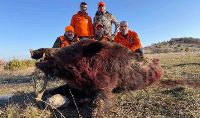 Tekirdağ'da avlanan 250 kiloluk yaban domuzu büyüklüğüyle şaşırttı