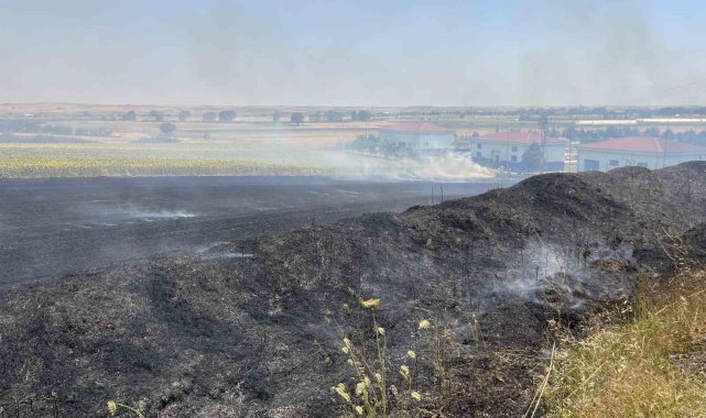 Tekirdağ'ın Hayrabolu ilçesinde, buğday tarlasında belirlenemeyen bir nedenle yangın çıktı.Yangın, öğle saatlerinde meydana geldi. Alevleri fark eden vatandaşlar, durumu hemen itfaiye ekiplerine bildirdi. İtfaiye ekipleri, rüzgarın da etkisiyle hızla yayılan yangına müdahale etmek için bölgeye sevk edildi.İtfaiye ekipleri ve çiftçilerin de traktörlerle yardım ettiği yangın, yaklaşık iki saat süren yoğun çabanın ardından kontrol altına alındı.Yangında, 70 dekar buğday ekili alan, 60 dekar ayçiçeği tarlası ve 700 dekar anız zarar gördü.Yangının çıkış sebebiyle ilgili soruşturma başlatıldı.