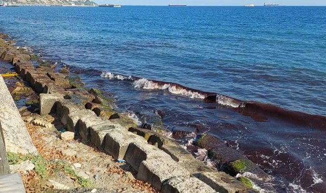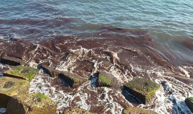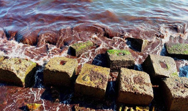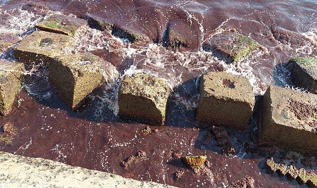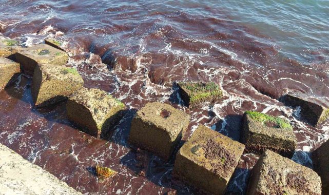 Marmara Denizi'nin Tekirdağ kıyıları, lodosun getirdiği kızıl yosunlarla adeta kızıla boyandı.