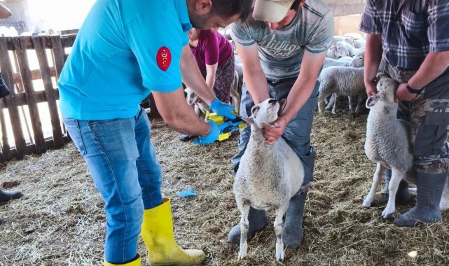 Tekirdağ'ın Çorlu ilçesinde küçükbaş hayvancılık işletmelerinde kuzuların küpelenip aşılanması çalışmaları yapıldı.Tekirdağ Tarım ve Orman Müdürlüğü'ne bağlı veteriner hekimler, Çorlu'da faaliyet gösteren küçükbaş hayvancılık işletmelerini ziyaret ederek yeni doğan kuzuları kayıt altına almak için kulak küpesi uygulaması gerçekleştirdi. Aynı zamanda programlı aşı takvimi çerçevesinde hastalıklara karşı koruyucu aşılamalar da yapıldı.Veteriner hekimler tarafından yapılan çalışmalarla hem hayvan sağlığı korunuyor hem de hayvancılık kayıt sistemi güncellenerek sürdürülebilir üretim destekleniyor. Küçükbaş hayvan sahipleri yapılan hizmetten memnuniyet duyduklarını belirtti.