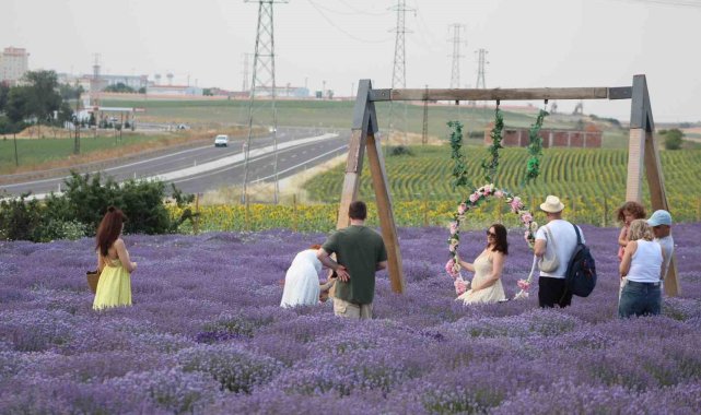 İstanbul'a yaklaşık 1.5 saat mesafede bulunan Tekirdağ'da lavanta tarlalarının çiçek açmasıyla birlikte ortaya çıkan kartpostallık manzaralar, ziyaretçileri adeta büyülüyor. Trakya'nın bereketli topraklarında açan mor lavantalar, sunduğu etkileyici görsel şölenle hem doğa tutkunlarının hem de fotoğraf meraklılarının ilgi odağı haline geldi.Haziran ayının ortalarından itibaren çiçeklenmeye başlayan lavanta tarlaları, Süleymanpaşa ve Şarköy başta olmak üzere Tekirdağ'ın pek çok ilçesinde masalsı görüntüler sunuyor. Özellikle hafta sonları yoğun ilgi gören tarlalar, ziyaretçilerin lavantaların arasında bol bol fotoğraf çektirdiği, doğayla baş başa vakit geçirdiği bir uğrak noktası haline geldi. Bazı ziyaretçiler yalnızca bu görsel şöleni fotoğraflamak için gelirken, kimileri lavantanın üretim süreci ve hasadını da yakından görmek istiyor.İstanbul'a yakınlığı sayesinde günübirlik turlarla gelen çok sayıda ziyaretçiyi ağırlayan lavanta tarlaları, doğa fotoğrafçılarından gelin-damat çekimlerine kadar farklı konseptlerde çekim yapmak isteyenlerin vazgeçilmez adresi haline geldi.Lavantaların temmuz ayı ortalarına kadar çiçekli kalması beklenirken, Tekirdağ bu süreçte mor örtüsüyle misafirlerini ağırlamaya devam edecek.