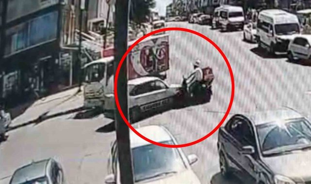 Tekirdağ'ın Kapaklı ilçesinde otomobil ile motosikletin çarpışması sonucu meydana gelen trafik kazası güvenlik kamerası tarafından anbean kaydedildi.