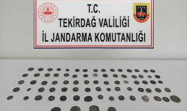 Tekirdağ İl Jandarma Komutanlığı ekipleri, Çorlu ilçesi Önerler Mahallesi'nde yapılan aramada tarihi eser niteliği taşıyan 79 adet sikke ele geçirdi.
