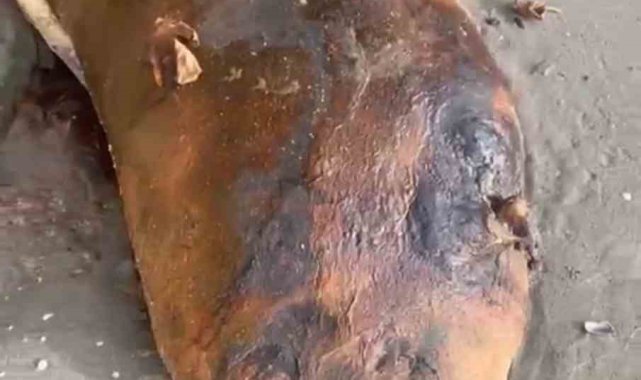 Tekirdağ'ın Süleymanpaşa ilçesi Beyazköy sahilinde kıyıya vuran ve çürümeye başlayan deniz canlısı bulundu.