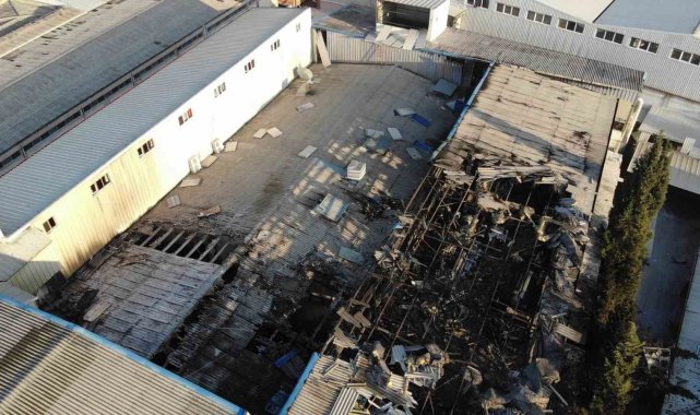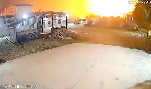 Bursa'da dün gece bir tekstil fabrikasında yaşanan patlama iş yerinin güvenlik kameraları tarafından saniye saniye görüntülendi. Patlama sonrası çıkan yangında fabrika büyük zarar görürken günün ilk ışıklarının ardından çekilen dron görüntülerinde patlamanın boyutu gözler önüne serildi.Edinilen bilgiye göre, merkez Osmangazi ilçesi Demirtaş Organize Sanayi Bölgesinde faaliyet gösteren bir tekstil fabrikasında iddiaya göre makinenin patlaması sonrası yangın çıktı. Hızla büyüyen alevler fabrikanın büyük bir bölümünü sararken, çalışanlar 112 ekiplerini arayıp bilgi verdi. Çok sayıda itfaiye ekibinin müdahalesiyle saatler sonra kontrol altına alınan yangında maddi hasar meydana gelirken, yangında herhangi bir can kaybı ve yaralanan olmadı.Patlama anı kameradaTekstil fabrikasında yaşanan patlamaya ait görüntüler iş yerinin güvenlik kamerasına anbean yansıdı. Gece yaşanan patlamada alevler ile birlikte etraftaki çatı malzemelerinin de havaya uçtuğu görüldü. Patlama sırasında o bölgede kimsenin olmaması büyük bir facianın önüne geçerken patlamayla ilgili polis ve itfaiye ekiplerinin araştırma başlattığı öğrenildi.Enkaz havadan görüntülendiYangın nedeniyle fabrikanın büyük bir bölümü enkaza dönüşürken, günün ilk ışıklarıyla birlikte fabrikanın gökyüzünden dron ile çekilen görüntülerinde zararın boyutu da belli oldu. Yangın sonrası oluşan tahribat havadan görüntülendi. Olay yeri inceleme ve bilirkişi heyetinin tahkikatı devam ediyor.