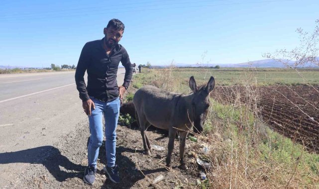 Hatay'da yolun karşısına geçmek isteyen eşek, aracın çarpmasıyla telef oldu. Telef olmasının ardından yol kenarına bırakılan eşeğin başında saatlerce bekleyen sıpası ise çevreden geçen vatandaşları duygulandırdı.Reyhanlı ilçesi Antakya - Reyhanlı yolu Beşaslan Mahallesi mevkiinde yolun karşısına geçmeye çalışan eşeğe araç çarptı. Aracın çarpmasıyla eşek telef olurken, yanında bulunan sıpası kazayı yara almadan atlattı. Eşeğe çarparak telef eden sürücü, ölen eşeği yol kenarına kadar sürükleyip bıraktı. Araç çarpmasıyla telef olan eşeğin sıpası kaza sonrası annesinin yanına giderek saatlerce yanından ayrılmadı. Yalnız kalan sıpaya, Hatay Büyükşehir Belediyesi Sahipsiz Hayvan Bakım ve Rehabilitasyon Merkezi sahip çıktı.Telef olan eşeğin yavrusunun saatlerce annesinin yanından ayrılmadığını ifade eden vatandaş Faruk Erkal, sıpanın ağladığını söyledi. Erkal, "Burada eşek ve yavrusu var. Araçlar burada çok hızlı geçiyorlar. Biraz dikkatli olmalarını istiyorum. Çünkü burada herkes hayvancılıkla uğraşıyor. Gördüğünüz gibi eşek yavrusu, annesini bırakmıyor. Anne eşeğe arabayla çarpıp kaçmışlar, anne eşek de ölmüş. Burası köy yeri sürücüler biraz daha dikkatli olsunlar. Annesi ölmüş ama yavrusu annesini bırakamıyor. Annesi öldü diye eşek yavrusu ağlıyor. Bu bir hayvan ama bu bir candır. Hayvan deyip bu şekilde bırakmayalım. Eşek yavrusu da bir can taşıyor. Annesi ölmüş eşek yavrusu, yazık oldu. O yüzden burada daha dikkatli olalım" ifadelerini kullandı.