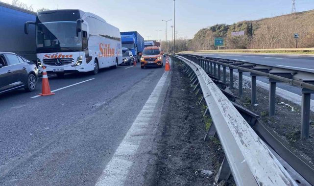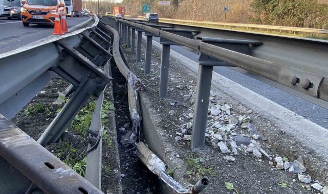 TEM Otoyolu'nun Kocaeli geçişi Ankara istikametinde tankerin çarptığı aydınlatma direği, İstanbul istikametinde seyir halinde olan otomobilin üzerine devrildi.