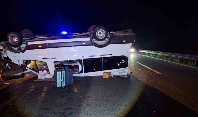 TEM Otoyolu'nda bariyerlere çarpan minibüs ters döndü: 4 yaralı