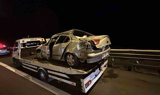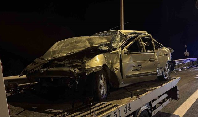 TEM Otoyolu Bolu Dağı Tüneli çıkışında bariyerlere çarpan otomobil hurdaya döndü. Kazada 1'i ağır 3 kişi yaralandı.