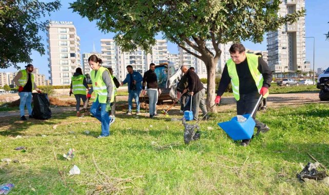 Adana Büyükşehir Belediyesi çalışanları çevre bilinci oluşturmak adına yol kenarındaki çöpleri topladı.